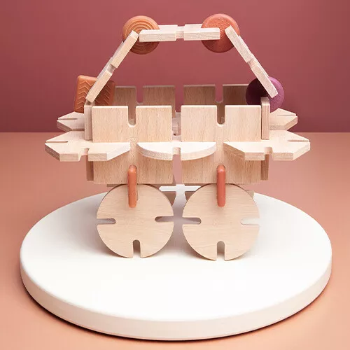 Een toren, een auto of een abstract kunstwerk; met de houten ‘Builder’ bouwset van het Poolse merk Bavvic zijn talloze unieke constructies te bouwen. Het open-einde-speelgoed laat kleine architecten en bouwers hun eigen fantasie volgen.