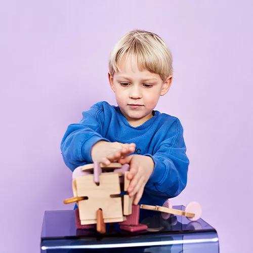 Het open-einde-speelgoed heeft talloze creatieve mogelijkheden en laat kleine architecten en bouwers hun eigen fantasie volgen.