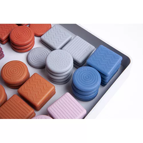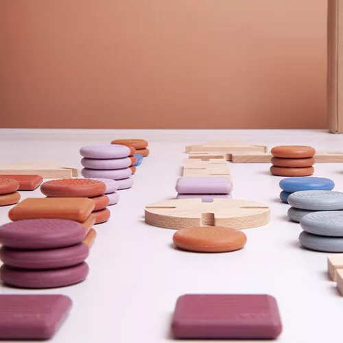 Met deze uitbreidingsset van siliconen connectors voor de bouwstenen van het Poolse merk Bavvic worden de bouwwerken extra kleurrijk. De sensorische, siliconen connectors zijn te combineren met de bouwsets van Bavvic.