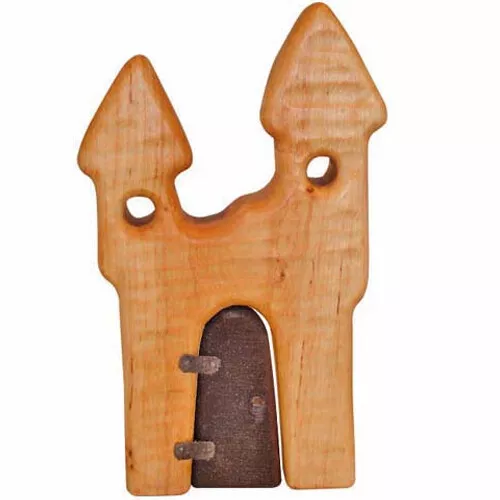 De kasteeltoren wordt met de hand gemaakt uit een enkel stuk hout, waardoor het robuust en van hoge kwaliteit is. Ook is daardoor elk stuk speelgoed uniek.
