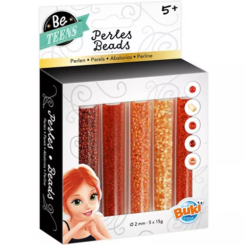 Om creatief aan de slag te gaan een set van kleine kraaltjes in ‘Tubes de perles rouges’ van het Franse merk Buki voor het maken van armbandjes of kettingen. Deze set bestaat uit kralen in verschillende roodtinten. Mix de kleuren voor een mooi resultaat.