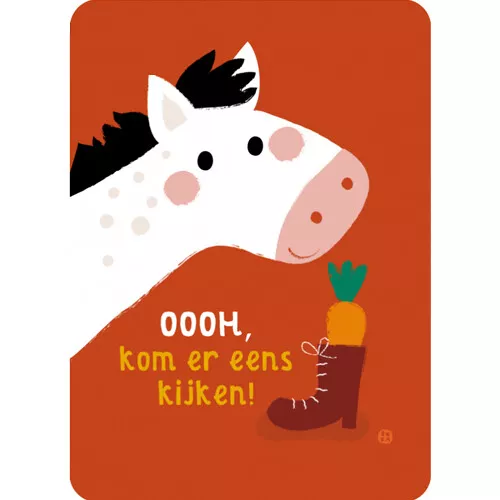 Stuur iemand een leuke Sintgroet met de kaart ‘OOOH, kom er eens kijken!’ van het Nederlandse merk By Bora. Op de achterkant is ruimte voor een bericht, adres en een postzegel.