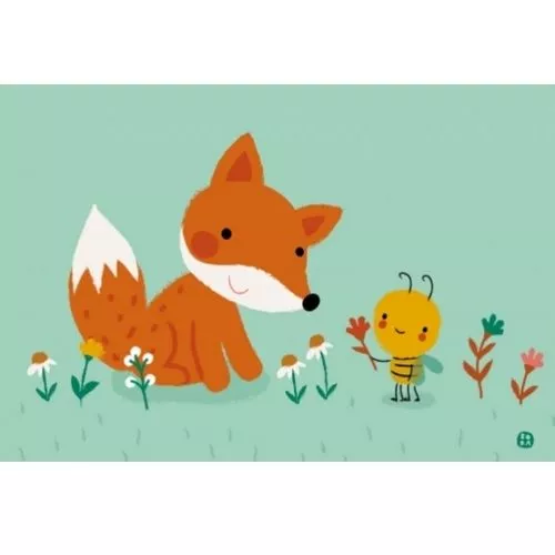 Een postkaart ‘For you’ met een vosje en een bij. Stuur de ansichtkaart aan een speciaal iemand of hang hem met maskingtape als versiering op de muur.