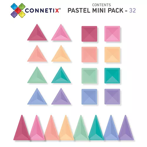De fantasie van kinderen kent geen grenzen met de pastelkleurige speeltegels Connetix 32 Piece Pastel Mini Pack’ van het Australische merk Connetix. Open-ended bouwspeelgoed van speeltegels met magnetische randen. Door ze aan elkaar vast te klikken kan met het constructiespeelgoed platte kunstwerken of compacte bouwwerken worden gemaakt. Â