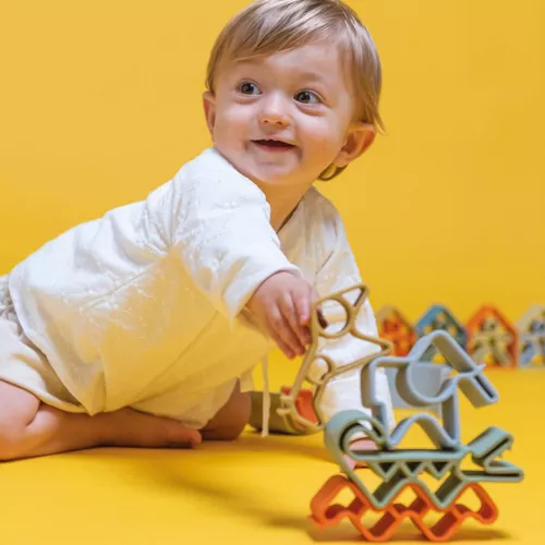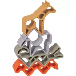 Deze bijt- en stapelspeeltjes ‘Natuur – Dieren’ van het Spaanse merk Dëna zijn veelzijdig open ended speelgoed, waar op allerlei manieren mee gespeeld kan worden. Als bijtspeeltje, als stapelspeelgoed en zelfs als bakvorm voor de lekkerste koekjes in de leukste vormen!