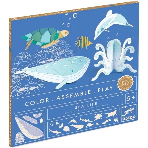 Niets zo leuk als zelfgemaakt speelgoed. Met deze DIY knutselset ‘Sea Life’ van het Franse merk Djeco maken kinderen hun eigen 3D zeedieren.