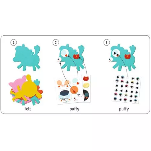 Een knutselpakket ‘J’aime les animaux’ van het Franse merk Djeco voor kleine knutselaars. Stel de liefste, gekste of mooiste dieren samen met het vilt, de puffy stickers en wiebeloogjes. Een creatieve activiteit met een uniek resultaat dat gezien mag worden!