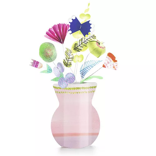 Deze creatieve knutselset heeft alles wat kinderen nodig hebben om meer dan 30 papieren bloemen en bladeren te maken, en een mooie vaas om ze in uit te stallen. Allemaal versierd met glitters!