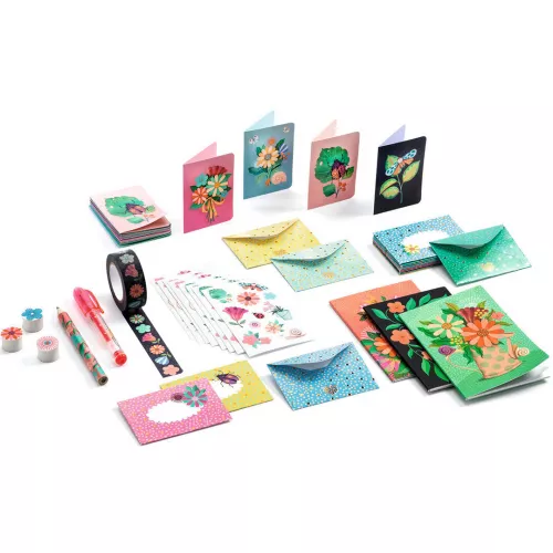 Schrijf vriendinnen, ouders een lieflijk kattebelletje, bedankje of felicitatie met de mooie schrijfset ‘Mini Marie Box’ uit de serie ‘Lovely Paper’ van het Franse merk Djeco.