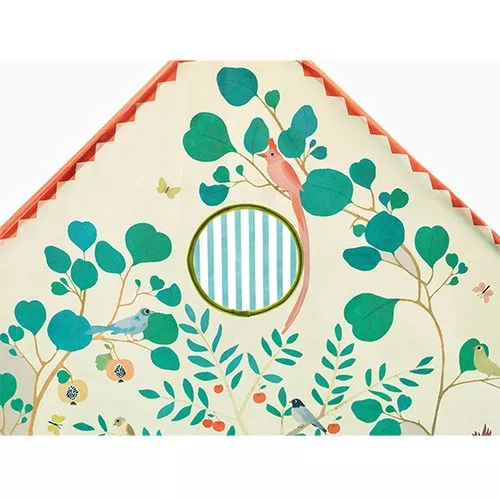 Aan de buitenkant versierd met veel planten en dieren. Het kinderhuis is geschikt voor binnenspelen en makkelijk in elkaar te zetten.