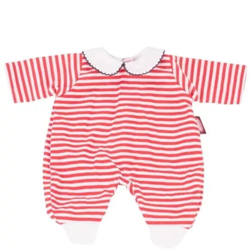Dit gestreepte poppenpakje ‘Maritim’ van het Duitse merk Götz staat niet alleen zonnig als de babypop meegaat naar het strand of op de zeilboot, maar het witte kraagje met donkerblauwe rand staat ook stijlvol.