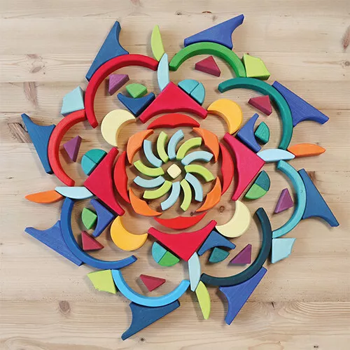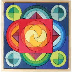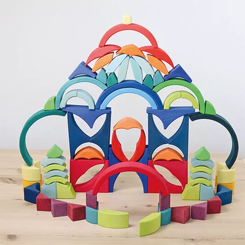 Deze kleurrijke set van houten bouwstenen ‘Arcs in Squares’ van het Duitse merk Grimm’s is geïnspireerd op pedagogische principes van Froebel. Uitdagend speelgoed dat met vele boogvormige blokken de verbeeldingskracht van de kinderen de vrije loop laat en veel mogelijkheden biedt voor het creëren van mooie bouwwerken en het leggen van patronen.