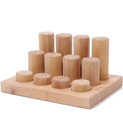 Veelzijdige constructie rollers. Deze houten speelgoedstaven van het Duitse merk Grimm’s zijn multi inzetbaar. Als pilaren bij het bouwen van huizen en kastelen of het stapelen van torens.