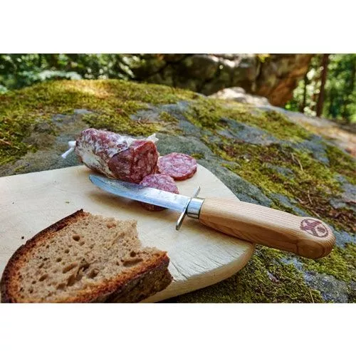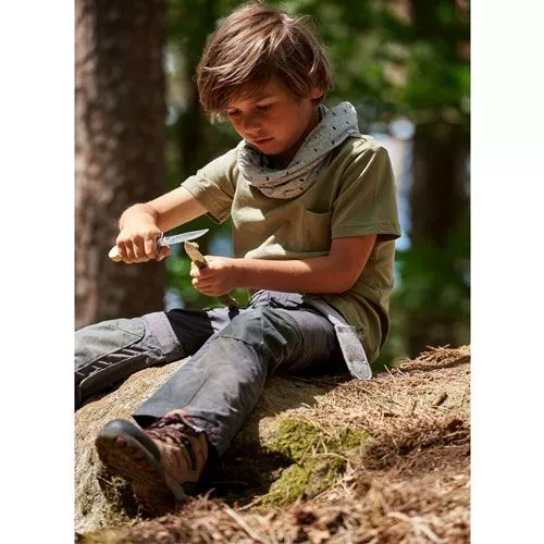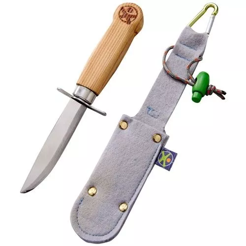 Ideaal, een outdoormes van het Duitse merk Haba voor op kamp of vakantie, tijdens boswandelingen of knutselactiviteiten. Het kindermes heeft een uiteinde dat niet scherp is, maar wel geslepen kan worden. Het maken van speren of spiezen is met dit outdoormes een peulenschil, maar ook het snijden van groente, fruit of worst is een eenvoudig karweitje met dit onmisbare gereedschap voor de junior avonturier.