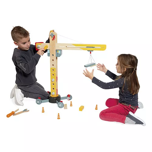 Deze grote houten speelgoedkraan van het Franse merk Janod biedt heel veel speelmogelijkheden voor kleine nieuwsgierige kinderen. Hoe wordt er gehesen? De kraan hijst niet alleen omhoog en omlaag, maar kan ook nog naar voren en naar achteren bewogen worden.