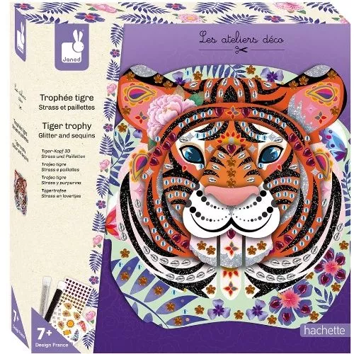 Deze uitbundige tijgerkop ‘Glitter and Sequins Tiger Trophy’ van het Franse merk Janod staat prachtig aan de muur van de kinderkamer. Extra leuk: kinderen kunnen de kartonnen dierenkop zelf in elkaar zetten en versieren met glitter en decoratiesteentjes.