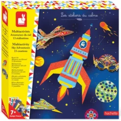De opties zijn eindeloos met deze knutselset ‘Multiactivity Sky Adventurers’ van het Franse merk Janod. Deze multi-activiteitenset bevat zes verschillende knutselactiviteiten: origami, modelbouw en het plakken van pailletten, stickers, zand en mozaïek.