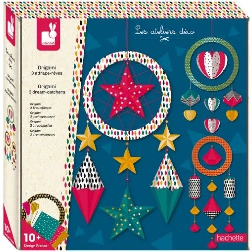 Met deze knutselset ‘Origami 3 Dream Catchers’ van het Franse merk Janod maken kinderen hun eigen mobiel en maken zij kennis met de kunstvorm origami. Creatief speelgoed dat prachtig staat in de kinderkamer.