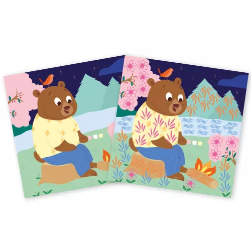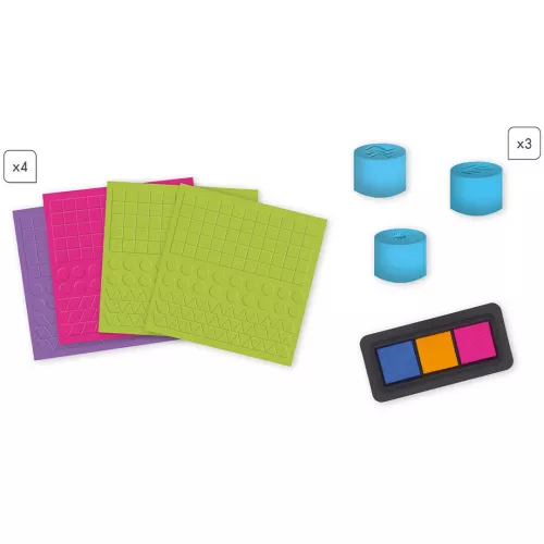 Met deze set kunnen kinderen vier afbeeldingen versieren met vinger inkt en stempels. Daarnaast zijn er vier afbeeldingen die versierd kunnen worden met foamstickers. Een leuke variatie aan knutseltechnieken.