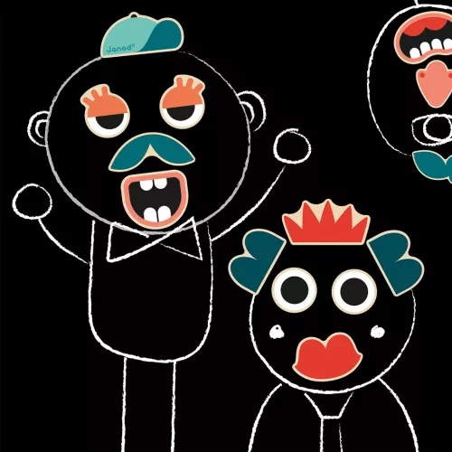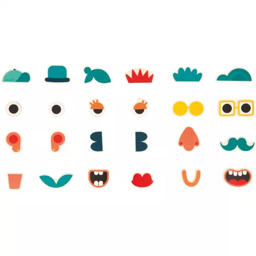 Met deze set van 24 houten magneten ‘Portraits’ van het Franse merk Janod is het lachen geblazen om de grappige portretten die ermee gemaakt kunnen worden. Een pet, snorretje of gekke oortjes? Mix en match de leukste figuurtjes bij elkaar!