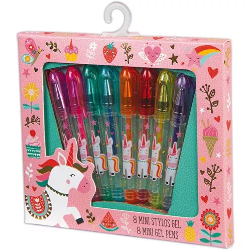 Een kleurrijke set gelpennen versierd met eenhoorns uit de serie Jolie Papeterie van het Franse merk Janod. Een onmisbaar item voor woord- en tekenkunstenaars om meesterwerken extra kleur aan te zetten.