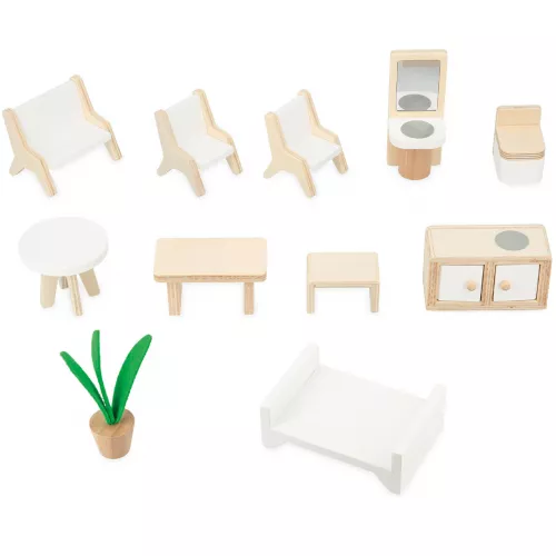 Het poppenhuis bevat de volgende meubels: