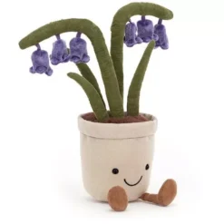 ‘Amuseable Bluebell’ van het Engelse merk Jellycat is een fleurige knuffelbloem in een canvas potje. Met de vertederende glimlach, corduroy beentjes en zwarte kraaloogjes is het haast onmogelijk om niet verliefd te worden op dit knuffelbolgewas. Uit de bruine, pluche aarde steken vijf groene, corduroy stengels, waarvan er twee zijn versierd met paarse klokjes.