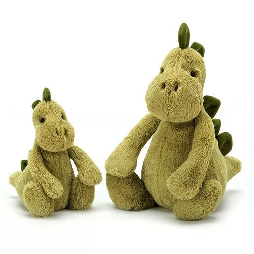 Kleine Bashful Dino van het Engelse merk Jellycat heeft vriendelijke kraalogen en de zachtste stekels. Een beste, prehistorisch maatje en knuffelvriend.Â