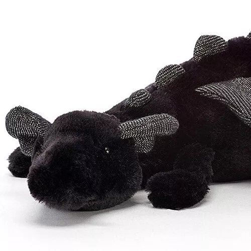 ‘Onyx Dragon Little’ van het Engelse merk Jellycat is een vriendelijk draakje met zwarte kraalogen en een zwarte, fluweelzachte vacht. Met zijn grappige flaporen en typische drakenstekels- en vleugels steelt hij ieders hart.