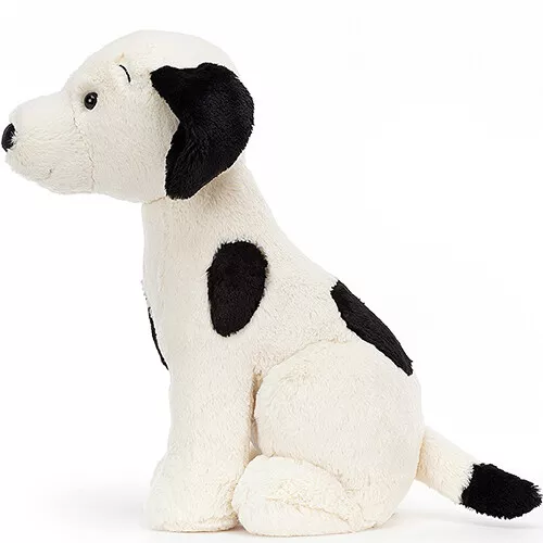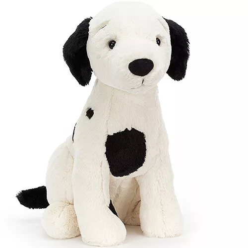 ‘Harper Pup’ van het Engelse merk Jellycat is een trouwe knuffelhond. De aanhankelijke viervoeter met fluweelzachte vacht, zwarte vlekjes en dropzwart snuitje, wil het liefst de hele dag geaaid en geknuffeld worden.