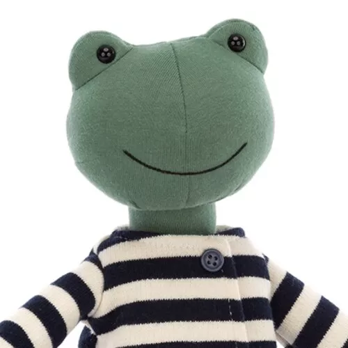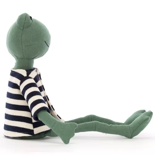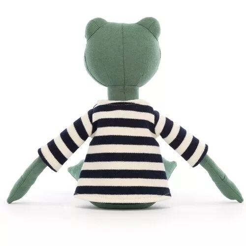Deze gezellige knuffelkikker ‘Francisco Frog’ van het Englese merk Jellycat houdt wel van een grapje. Met zijn gebreide streepjestrui, vacht van jerseystof en rondje kraaloogjes is deze kikkerknuffel een opperbest maatje.