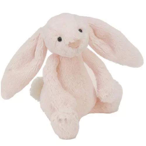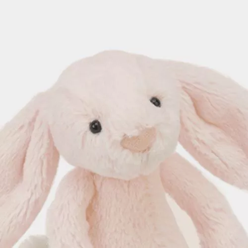 Bashful Blush Bunny van het Engelse merk Jellycat is een lief, oudroze speelgoedkonijn met kraaloogjes, een luxe fluweelzachte vacht en een klein roze neusje.