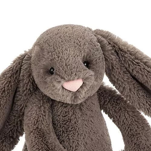 Bashful Bunny Truffle van het Engelse merk Jellycat is een lief speelgoedkonijn met kraaloogjes, een luxe fluweelzachte, bruingrijze vacht en een klein roze neusje. Een knuffel om te knuffelen en om altijd bij de hand te hebben. Haar lange slappe flaporen en slappe armen zijn gemakkelijk vast te houden.Â
