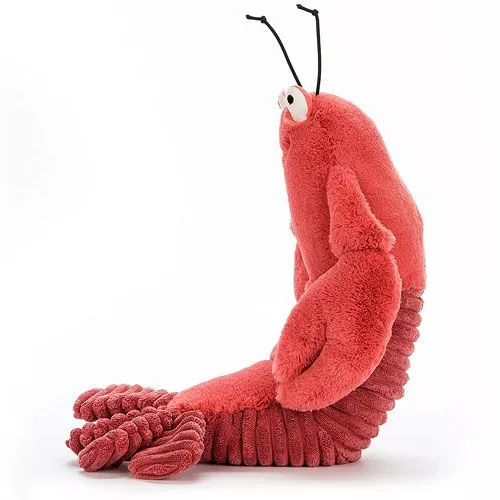 ‘Larry Lobster’ van het Engelse merk Jellycat is een ondeugende knuffelkreeft in een warme donkerroze kleur. Met zijn kleine glimlach, zwarte voelsprieten en vriendelijke, geborduurde puilogen, is hij onweerstaanbaar gezelschap. Deze grappige knuffelvriend heeft twee grote, zachte scharen en een geribbelde staart die uitloopt in vier flapjes. Houd hem altijd bij je voor knuffels en avonturen.