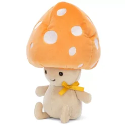 Met zijn vrolijke oranje hoed met witte sproeten is deze knuffelpaddenstoel ‘Fun-Guy Ozzie’ van het Engelse merk Jellycat een lieflijke bosbewoner.