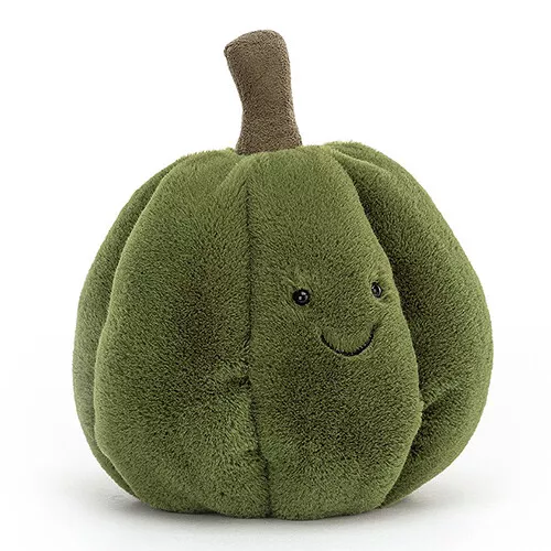 ‘Squishy Squash Green’ van het Engelse merk Jellycat is een vriendelijke pompoenknuffel om te vertroetelen. Met zijn vertederende glimlach, stoere groene kleur, mosgroene steel en kraaloogjes is deze knuffel een supergroente!