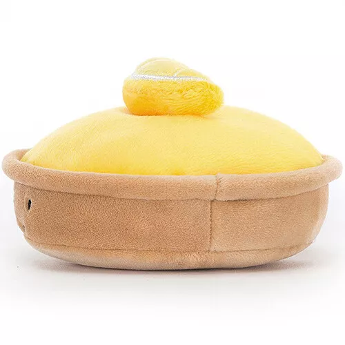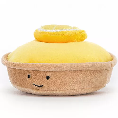 Het zachte knuffelgebakje heeft een aaibare bodem met een citroengele vulling en een geborduurd gezichtje. Vers van de patisserie is dit knuffelige citroentaartje favoriet onder fijnproevers.