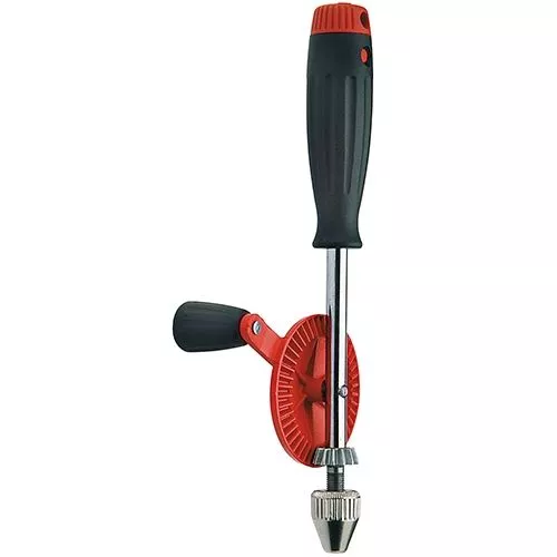 Er kan flink geboord worden met deze metalen handboor van professionele kwaliteit uit de serie Kids-at-Work van het Duitse speelgoedmerk Corvus. Bij boren met de hand ontwikkelen kinderen meer ‘gevoel’ voor gereedschap en de mogelijkheden daarvan.