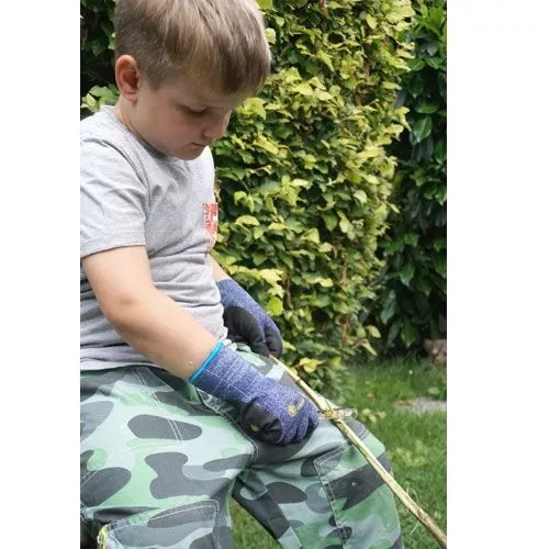 Een schilmesje uit de serie Kids-at-Work van het Duitse speelgoedmerk Corvus om takken en stokjes bij te schaven. Met een gekartelde rand voor verfijning. Voor kleine avonturiers.