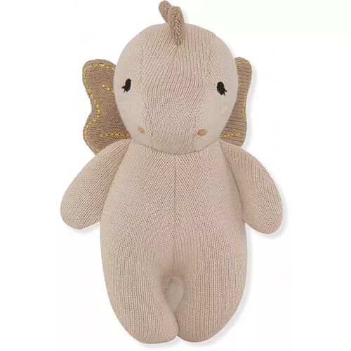 Een mythisch maatje om te knuffelen en vertroetelen. Deze roze, katoenen knuffeldraak ‘Mini Dragon – Rose’ van het Deense merk Konges Sløjd met geborduurde details, vleugels en een gebreide vacht voelt verrassend aan voor kleine handjes.