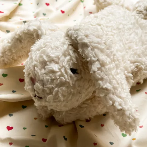 Dit lieflijke knuffelkonijn van het Deense merk Konges Sløjd geeft graag warme knuffels. Haal het warmtekussentje via de rits uit de buik van de konijnenknuffel. Warm het kussentje met lijnzaad op en geniet van de warmte.