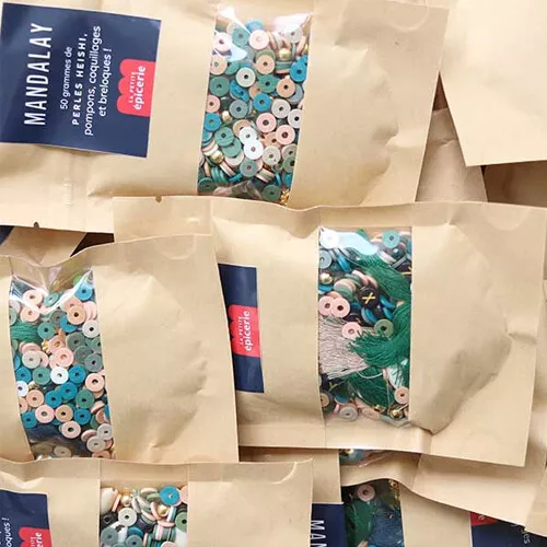 Een mix van Heishi-kralen en verschillende bedels ‘Mandalay’ van het Franse merk La Petite Épicerie voor het creëren van trendy armbanden of kettingen.