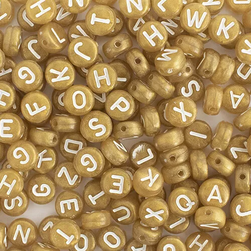 – de kralen hebben een gouden kleur, de letters zijn wit