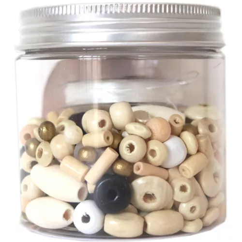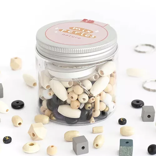 Maak prachtige sieraden en accessoires met de houten ‘Nature’ kralen van het Franse merk La Petite Épicerie. De knutselset bestaat uit naturel kralen in verschillende vormen met zwarte en gouden kralen voor een accent.
