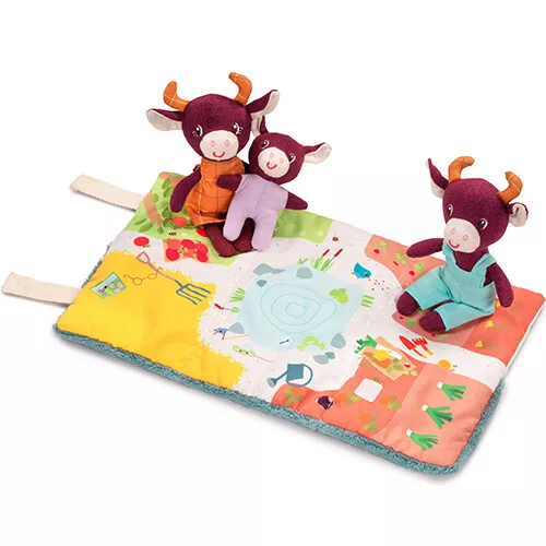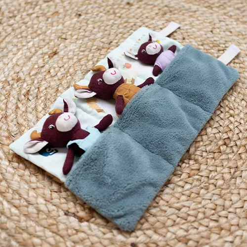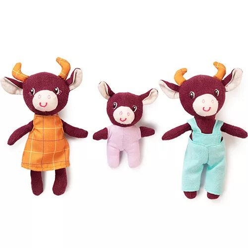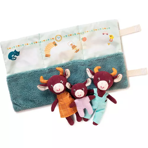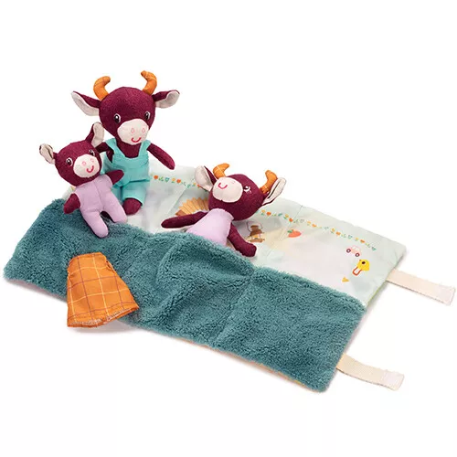 Deze speelgoedset ‘Het gezin van Rosalie de koe’ van het Belgische merk Lilliputiens bestaat uit drie koeknuffeltjes en een matje. Peuters kunnen hiermee naar hartenlust fantaseren en bedenken welke avonturen baby Rosalie en haar ouders allemaal beleven.