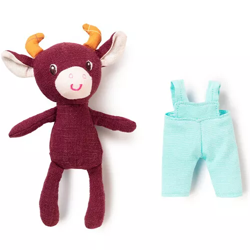 Het koeiengezin vermaakt zich op het uitgevouwen kleed in de tuin en ze kunnen ‘s avonds heerlijk slapen in hun knusse bedjes. Onder de kleren hebben de koetjes hun pyjama al aan. De kleertjes zijn gemakkelijk aan en uit te trekken.
