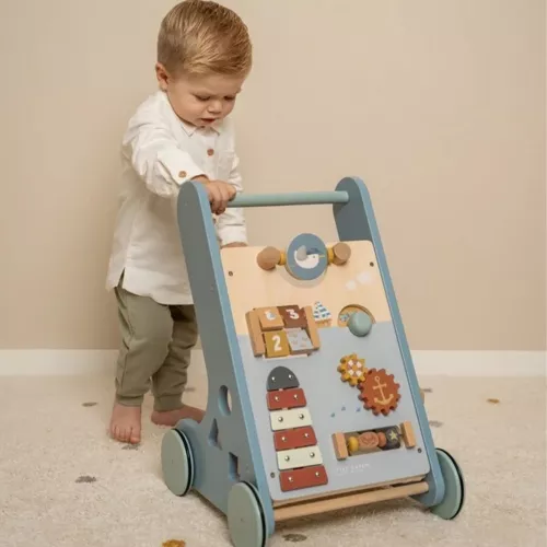 Een vrolijke multi-activiteitentrolley ‘Sailors Bay’ van het Nederlandse merk Little Dutch voor het oefenen van de eerste stapjes. Dit verrijdbare houten speelgoedwagentje heeft acht ingebouwde speeltjes. Als de beentjes moe worden van het lopen, kan de kleine zich hiermee vermaken.