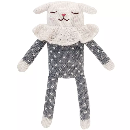 Een knuffellammetje ‘Lamb Soft Toy, Slate Dots Pyjamas’ van het Franse merk Main Sauvage. Met zijn zachte pyjama is dit lammetje een echt knuffelvriendje. De lappenpop van baby alpaca wol draagt een grijze pyjama met witte stipjes.