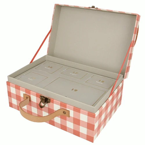 Honden vieren kerst op hun manier. Voor grote en kleine hondenliefhebbers kan met deze handgemaakte adventskalender ‘Dog Advent Calendar Suitcase’ van het Engelse merk Meri Meri het aftellen naar Kerstmis beginnen.