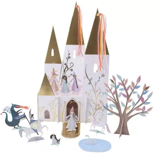 Deze ‘Magical Princess Centerpiece’ van het Engelse merk Meri Meri transformeert de feesttafel in een magisch sprookjesland met dit prinsessenkasteel als middelpunt. Prachtig gedecoreerd met torens in goudfolie en kleurrijke slierten. Samen met sprookjesfiguren brengt het tafereel kleine kinderen meteen in een feestelijke stemming.Â